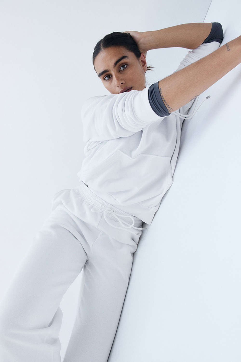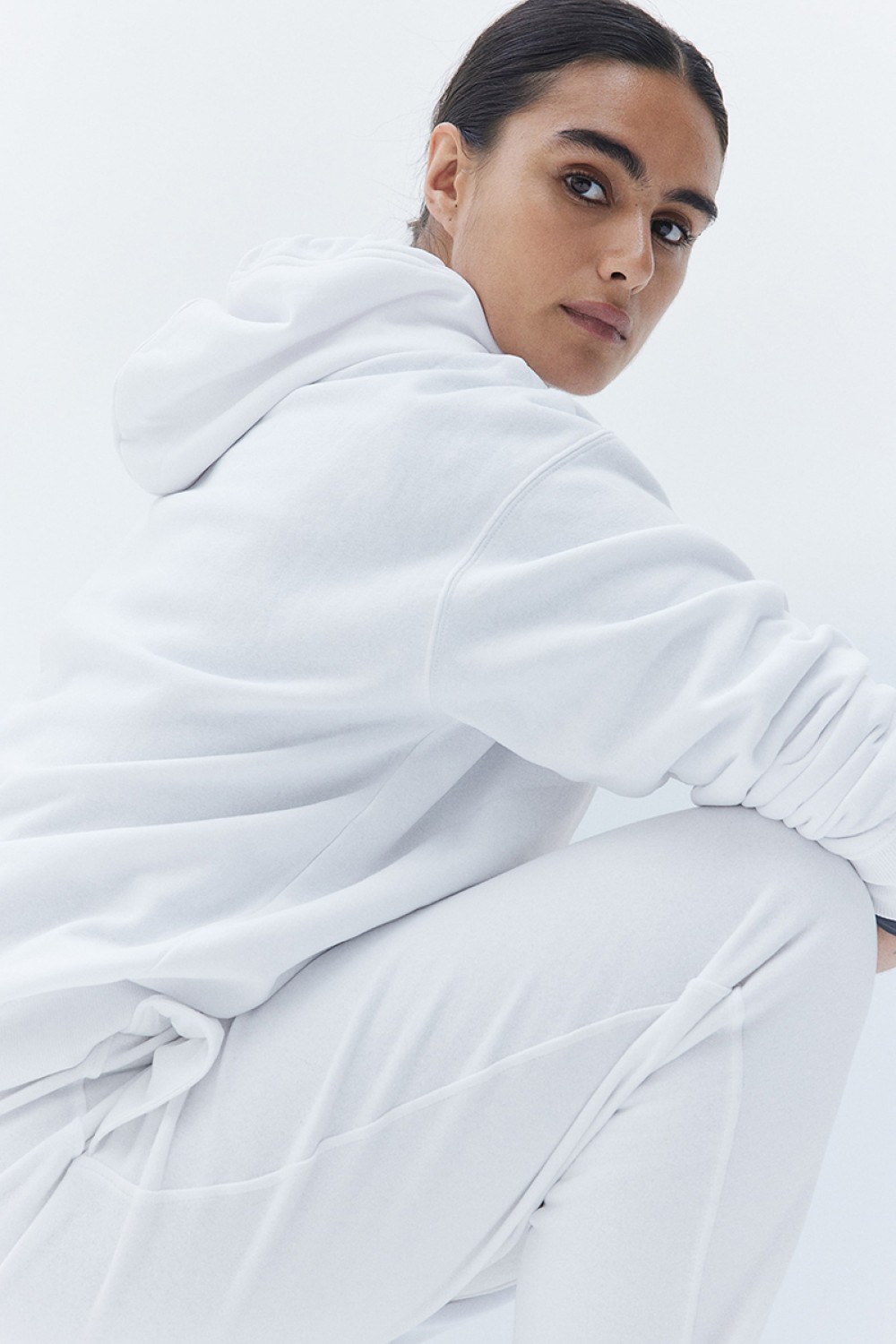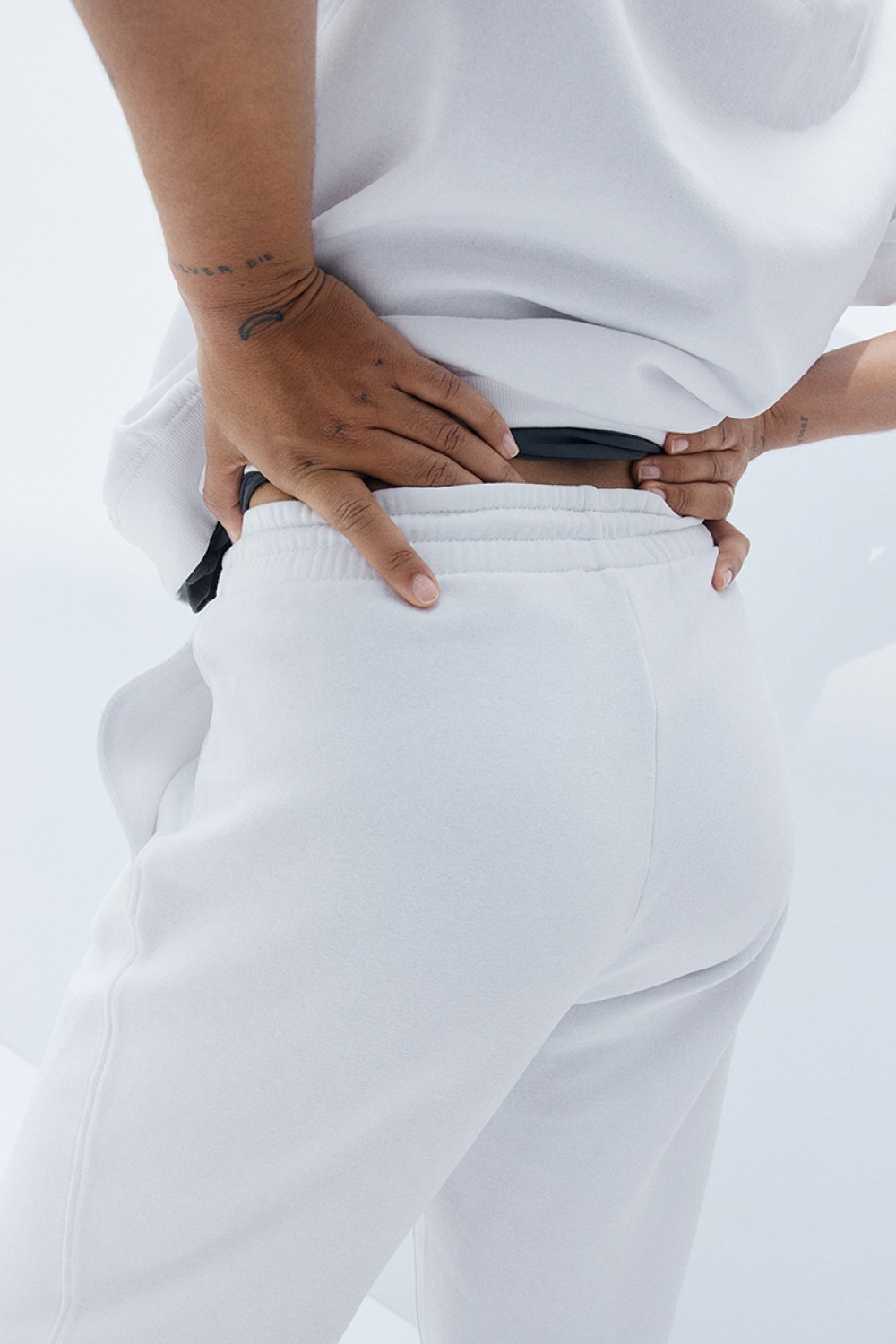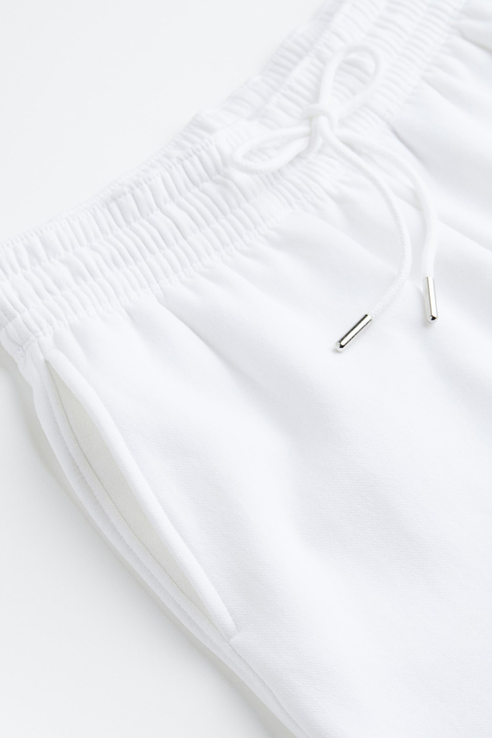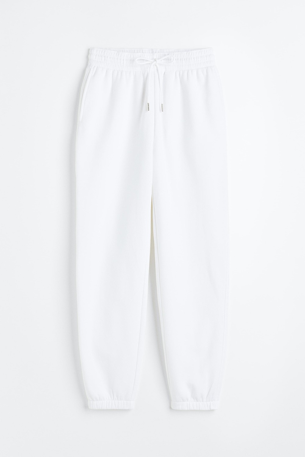 Sweatpants in soft, cotton-blend fabric. High waist with covered, elasticized waistband and drawstring, side pockets, and covered elastic at hems. Soft, brushed inside.