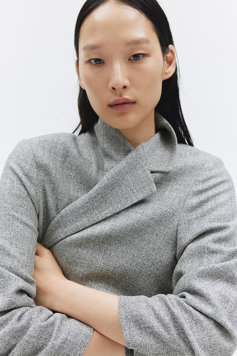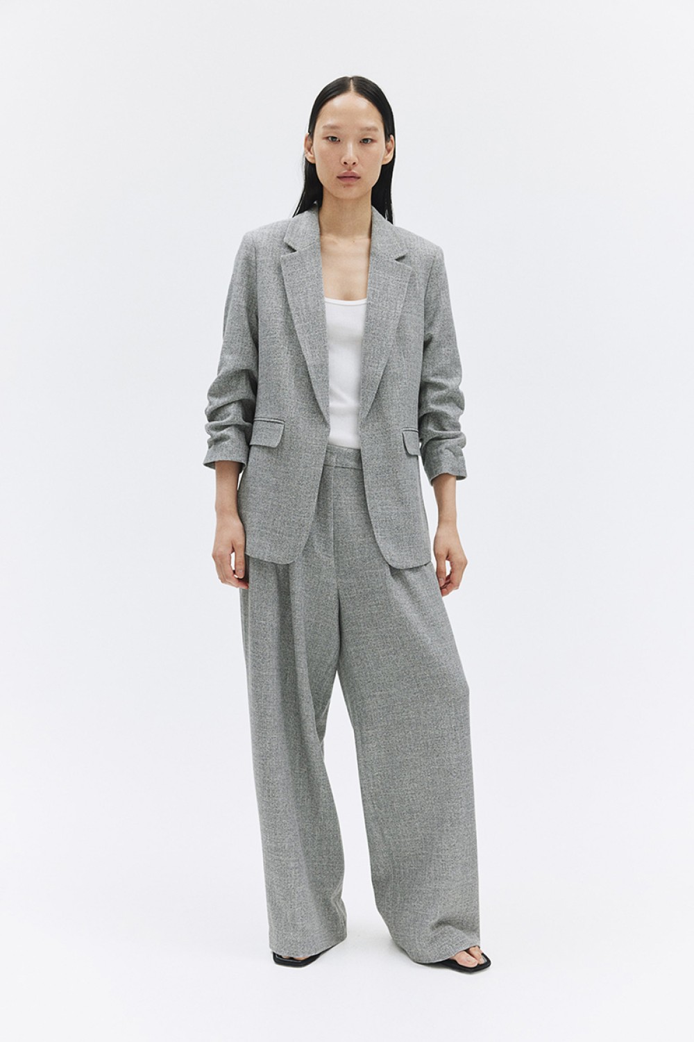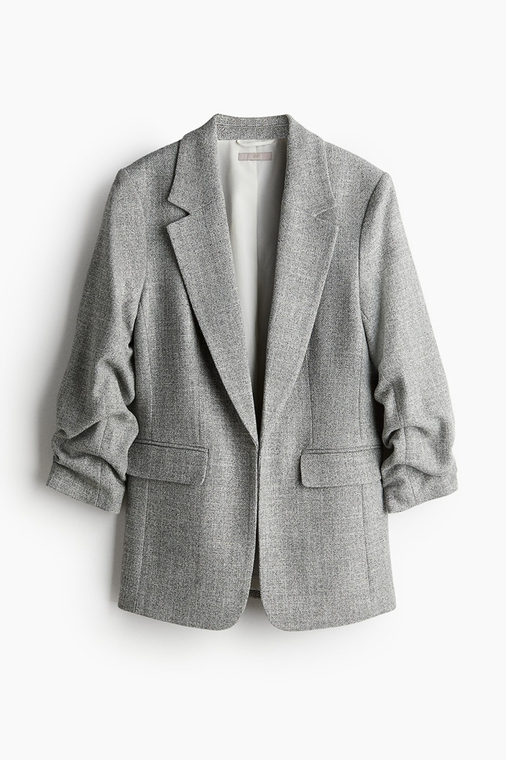 Fitted jacket in woven fabric made from a LivaEco viscose blend. Notched lapels, gathered, 3/4-length sleeves with shoulder pads, and front pockets with flap. No fasteners. Lined.