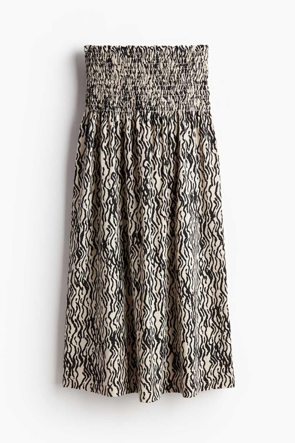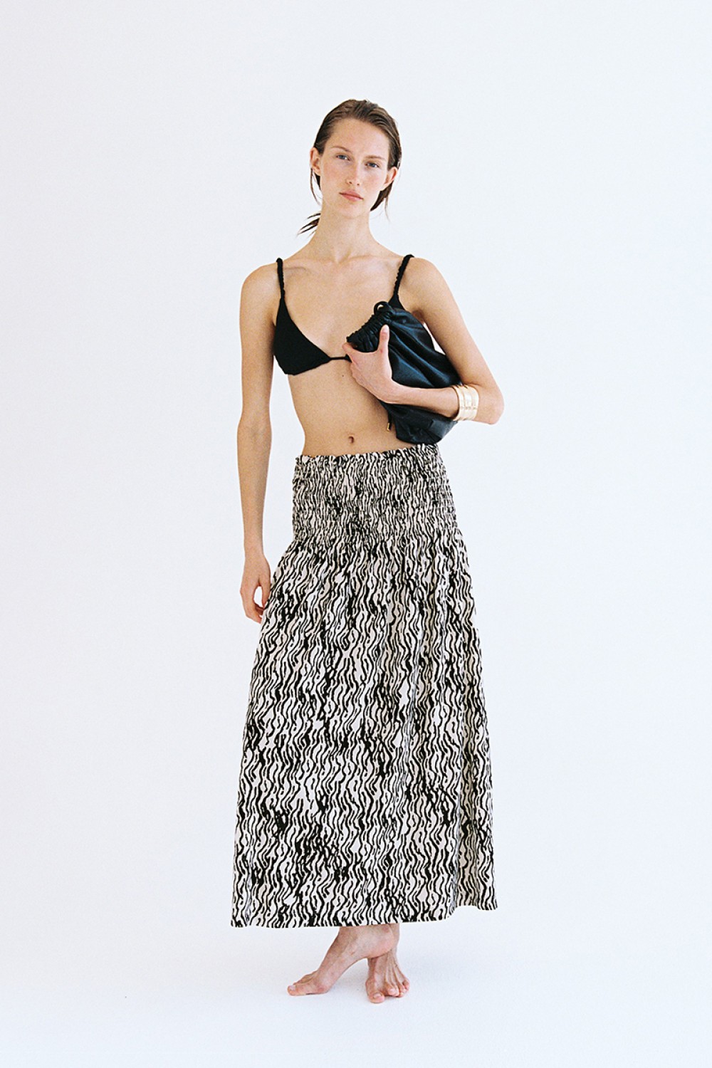 Long, flared skirt in a woven cotton and modal blend with wide smocking at waist. Unlined.
