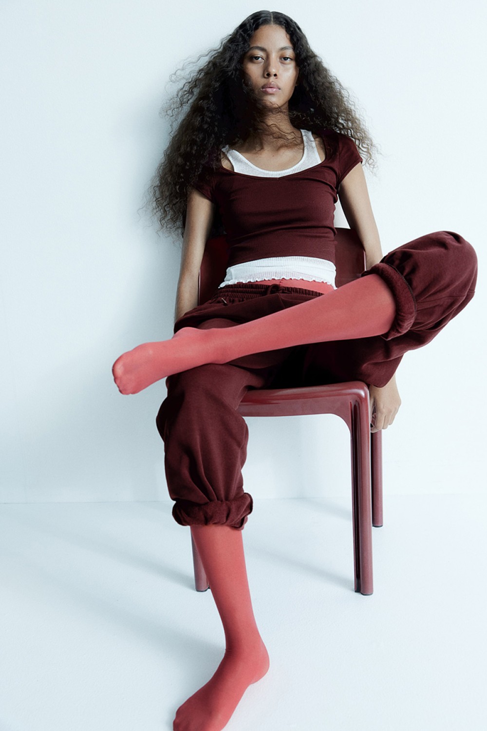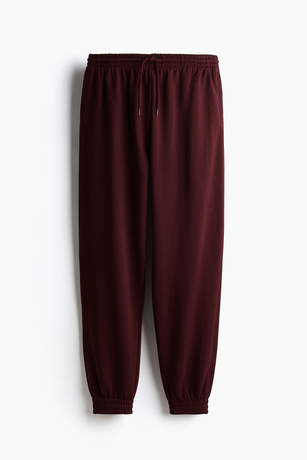Sweatpant joggers in soft fabric. High waist, drawstring waistband with smocked elastic, and side pockets. Gently tapered legs with smocked elastic at hems.