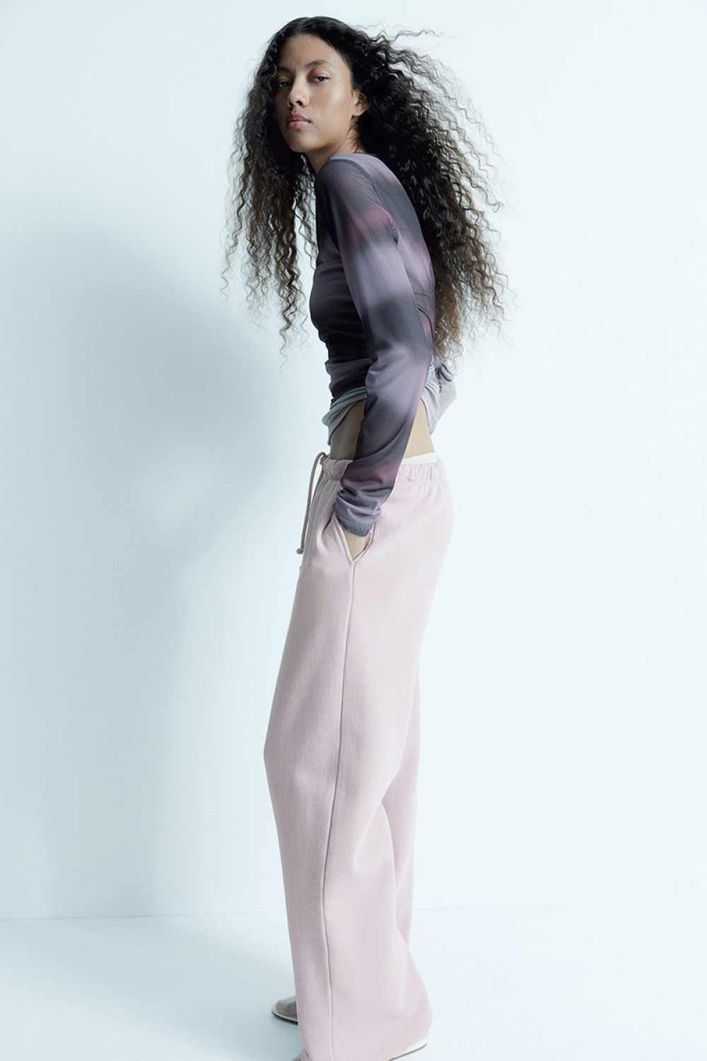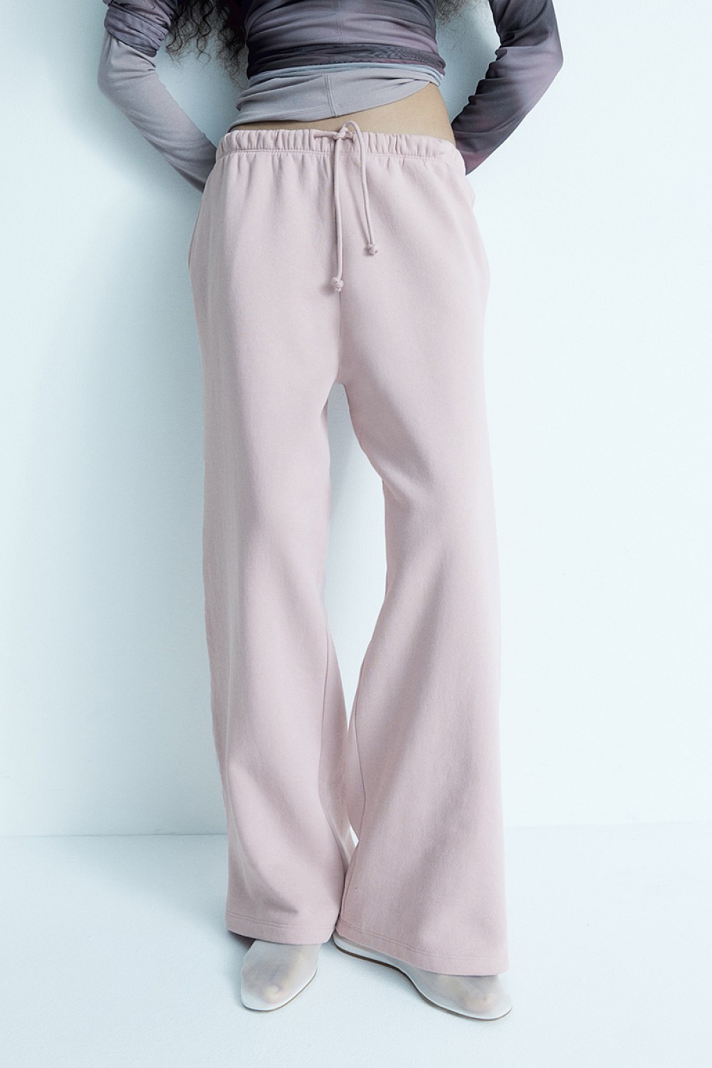 Loose-fit sweatpant joggers. Elasticized, drawstring waistband, discreet side-seam pockets, and wide legs.