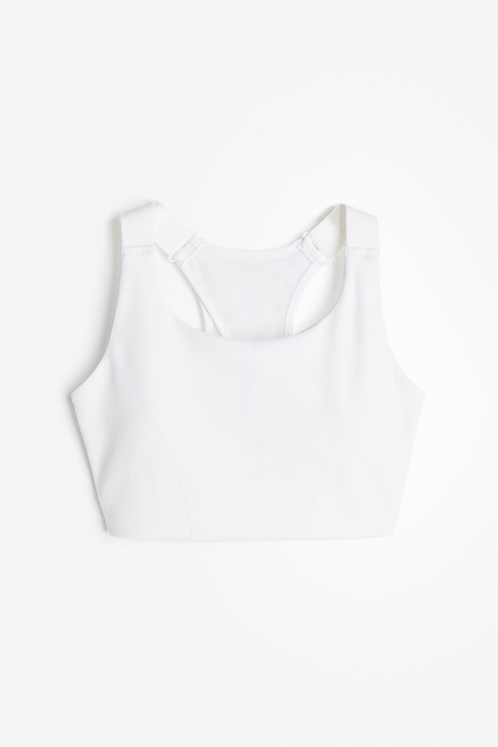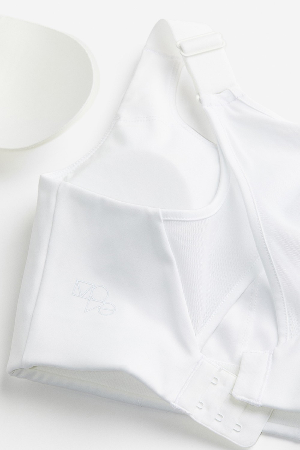 Sports bra in DryMove functional fabric to wick away moisture from skin and keep you comfortably dry while moving. Wide, adjustable shoulder straps, lined cups with removable inserts for shaping and adjustable fit, and racer back in mesh with a cut-out section. Hook-and-eye fastening at back. Maximum support for high-intensity workouts.